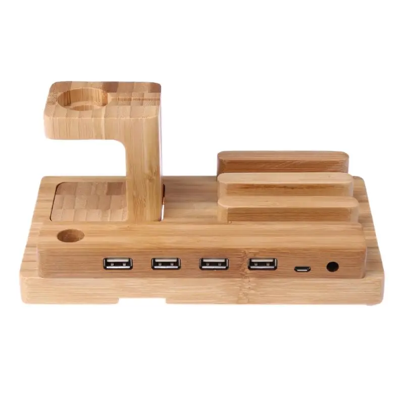OVERVIEW Product 3 IN 1 Docking Station Bamboo Wood Charge Holder Docking Station Bracket phone stand bracket For Ap